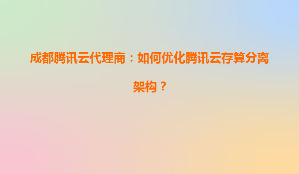2025-08-08成都腾讯云代理商:如何优化腾讯云存算分离架构? 一、腾讯云存算分离架构的核心优势 腾讯云作为国内领先的云计算服务商,其存算分离架构通过将存储资源与计算资源解耦,为企业提供了更...