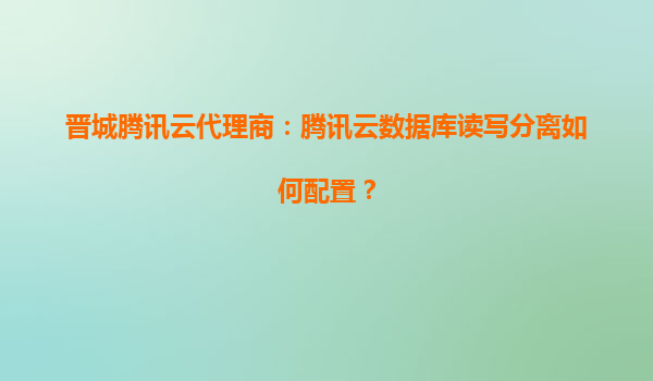 2025-08-04晋城腾讯云代理商:腾讯云数据库读写分离如何配置? 一、腾讯云数据库读写分离的核心优势 腾讯云数据库(TencentDB)提供高性能、高可用的读写分离能力,其核心优势包括: 自动负载均衡:通过...