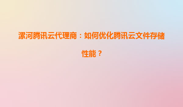 2025-08-03漯河腾讯云代理商:如何优化腾讯云文件存储性能? 在当今数字化时代,文件存储的性能直接影响企业的业务效率和用户体验。作为漯河地区的腾讯云代理商,我们深知优化腾讯云文件存储性能的重要性。本文将结合腾讯...