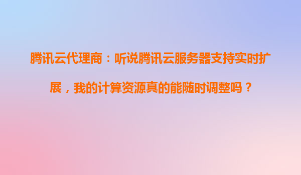 2025-10-27腾讯云代理商:听说腾讯云服务器支持实时扩展,我的计算资源真的能随时调整吗? 在云计算时代,企业对于计算资源的灵活性和可扩展性需求日益增长。腾讯云作为国内领先的云服务提供商,其弹性计算服务备受关...