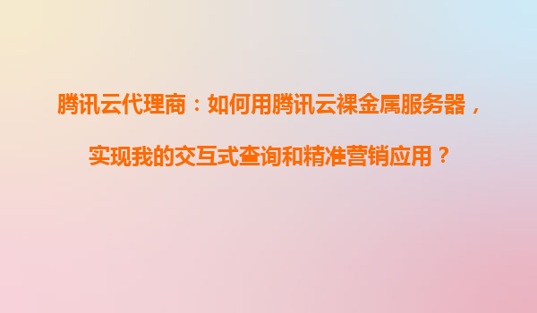 2025-10-27腾讯云代理商指南:如何利用腾讯云裸金属服务器实现交互式查询与精准营销应用 一、裸金属服务器的核心优势与业务场景匹配 腾讯云裸金属服务器(BMaaS)融合了物理机的性能优势与云服务的弹性能力,其...