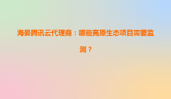 2025-07-07海晏腾讯云代理商:高原生态项目监测的关键领域与腾讯云技术优势 一、高原生态项目监测的必要性 高原生态系统因其独特的地理环境和脆弱性,成为全球生态保护的...