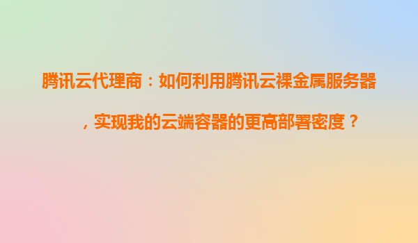 2025-10-25腾讯云代理商指南:如何利用腾讯云裸金属服务器实现云端容器更高部署密度 引言 随着云计算技术的快速发展,容器化部署已成为企业构建现代化应用的主流选择。然而,传统的虚拟化...