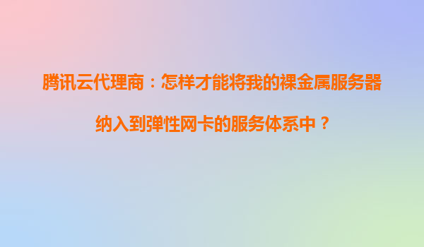 2025-10-26腾讯云代理商:如何将裸金属服务器纳入弹性网卡服务体系 一、裸金属服务器与弹性网卡的价值结合 裸金属服务器(BareMetalServer)提供物理机级别的性能隔离和资源独享,适合高性能计算、金融交...