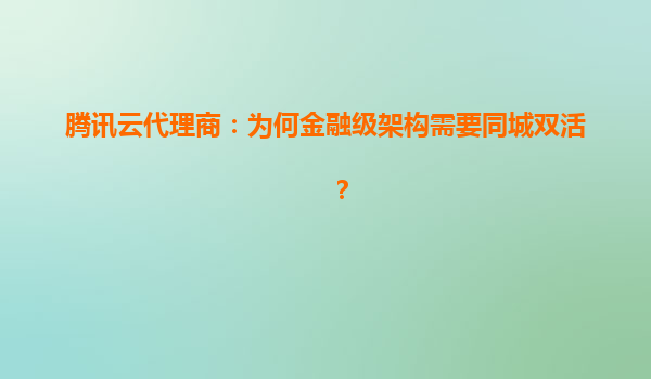 2025-06-11腾讯云代理商视角:为何金融级架构必须部署同城双活? 金融行业的生死命题:业务连续性 在金融行业,系统宕机1分钟可能意味着千万级损失。传统"主备模式"的灾备方案存在致命缺陷:切换时...