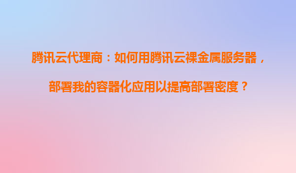 2025-10-23腾讯云代理商:如何用腾讯云裸金属服务器,部署我的容器化应用以提高部署密度? 1.腾讯云裸金属服务器的优势解析 腾讯云裸金属服务器(BareMetalServer)结合了传统物理服务器的性能优势与...