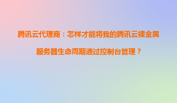 腾讯云代理商指南:如何通过控制台管理裸金属服务器生命周期 一、腾讯云裸金属服务器的核心优势 腾讯云裸金属服务器(BMaaS)结合了物理机的安全性与云计算的弹性管理能力,尤其适合高性能计算、核心数...