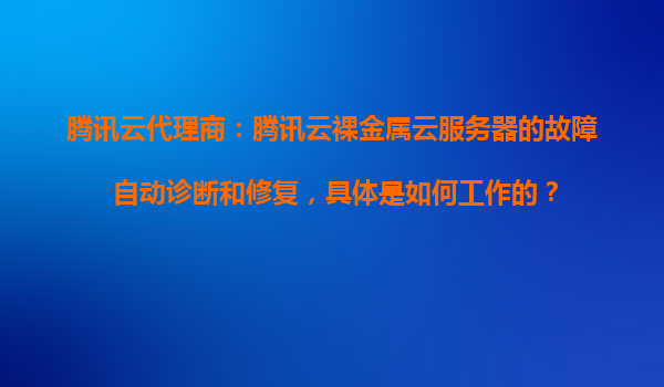 2025-10-23腾讯云代理商:腾讯云裸金属云服务器的故障自动诊断和修复机制解析 一、裸金属云服务器的技术背景与腾讯云优势 裸金属云服务器(BareMetalServer)是一种兼具物理机性能与云服务弹性的计算资源,直接基于...