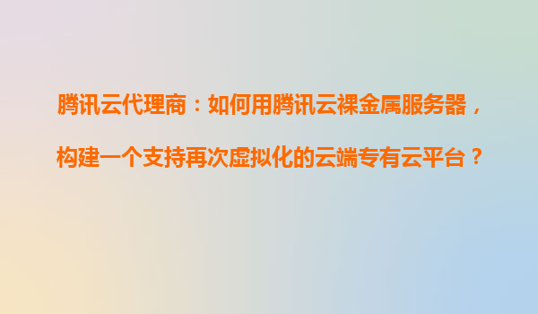 2025-10-22腾讯云代理商指南:如何用腾讯云裸金属服务器构建支持再次虚拟化的专有云平台 一、腾讯云裸金属服务器的核心优势 腾讯云裸金属服务器(BMaaS)兼具物理机性能与...