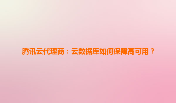 2025-05-29腾讯云代理商视角:云数据库如何保障高可用? 一、高可用性的核心价值与行业挑战 在数字化转型时代,数据库作为业务系统的核心引擎,其可用性直接影响企业运营。据行业统计,超过80%的企业将"数据库高可用"列...