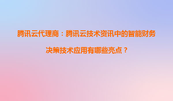 2025-05-25腾讯云代理商:智能财务决策技术应用的五大亮点 一、数据驱动的智能分析与决策支持 腾讯云通过其强大的大数据平台(如TBDS)和AI能力,为代理商提供实时数据处理与...