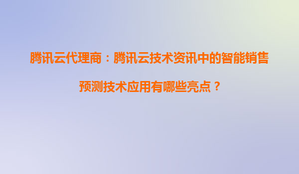 2025-05-24腾讯云代理商:腾讯云技术资讯中的智能销售预测技术应用亮点解析 一、智能销售预测技术的核心价值 在数字化转型浪潮中,腾讯云通过其智能销售预测技术,为企业提供从数据采集、分析到决策支持...