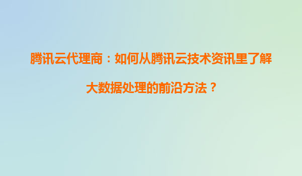 腾讯云代理商如何通过技术资讯掌握大数据处理前沿方法? 一、技术资讯:代理商获取前沿技术的核心通道 作为腾讯云生态体系的重要参与者,代理商可通过以下官方...