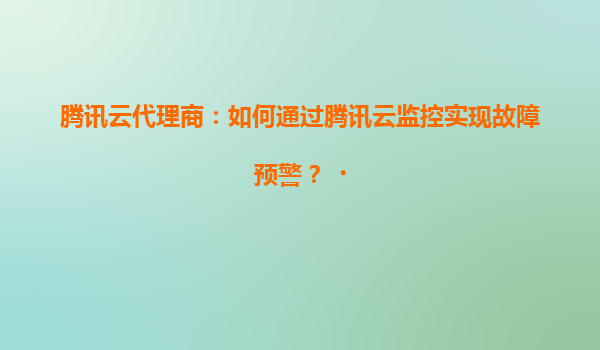 2025-05-21腾讯云代理商:如何通过腾讯云监控实现故障预警? 一、引言:故障预警的数字化必要性 在数字化转型加速的今天,企业业务系统对云服务的依赖程度日益加深。突发性故障可能导致业务中断、用户流失甚至品牌声...