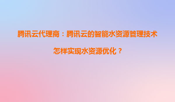 2025-05-20腾讯云代理商:腾讯云的智能水资源管理技术如何实现水资源优化? 一、水资源管理的挑战与技术创新 全球水资源短缺问题日益严峻,传统管理模式难以应对复杂的水质监测、管网漏损、供需匹配等难题。...