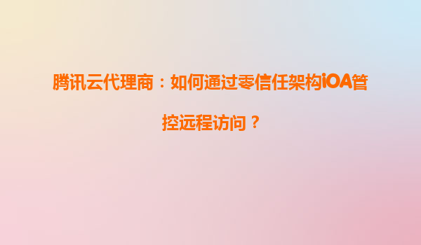 2025-05-15腾讯云零信任架构iOA:重塑远程访问安全新范式 零信任架构iOA的核心价值与腾讯云技术融合 在数字化转型加速的背景下,远程办公场景激增带来安全风险升级。腾讯云零信任架构iOA(Identity-OrientedAcc...