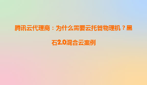 2025-05-11腾讯云代理商:为什么需要云托管物理机?黑石2.0混合云案例解析 一、企业为何需要云托管物理机? 随着数字化转型加速,企业对IT基础设施的需求日益复杂,传统物理服务器和纯虚拟化云服务...