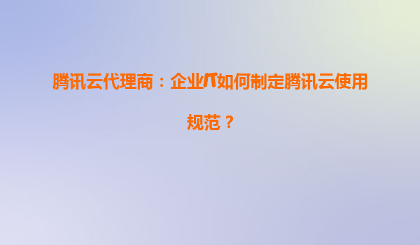 2025-04-12企业IT如何制定腾讯云使用规范:结合腾讯云优势构建高效管理体系 一、明确云资源使用范围与目标 在制定腾讯云使用规范时,企业需首先明确云资源的使用场景与业务目标。腾讯云提供超过200...