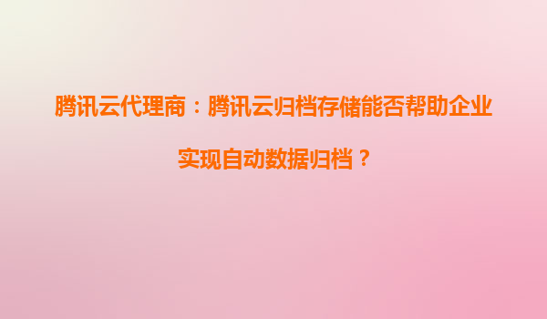 腾讯云代理商:腾讯云归档存储如何支持企业多级存储策略? 引言 在数字化转型的浪潮中,企业数据量呈指数级增长,如何高效、经济地管理海量数据成为关键挑战。...