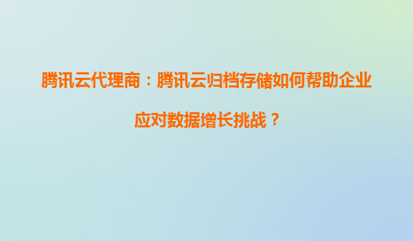 腾讯云代理商:腾讯云归档存储如何帮助企业应对数据增长挑战? 引言 在数字化时代,企业数据呈现爆炸式增长,如何高效、安全且低成本地存储和管理这些数据成为企业面临的重要挑战。...