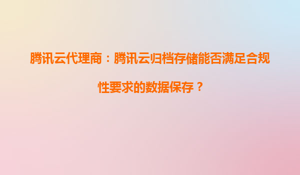 2025-10-01腾讯云代理商:腾讯云归档存储能否满足合规性要求的数据保存? 一、腾讯云归档存储的核心优势 腾讯云归档存储(CloudArchiveStorage,CAS)是专为冷数据设计的低成本、高可靠存储服务,其核心优势体现在...