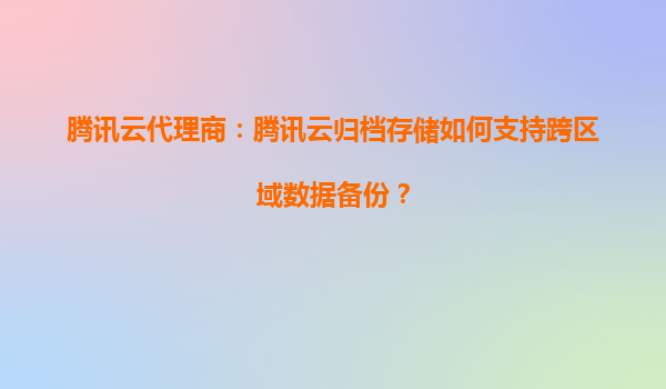 腾讯云代理商:腾讯云归档存储如何支持跨区域数据备份? 一、腾讯云归档存储的核心优势 腾讯云归档存储(CloudArchiveStorage,CAS)是腾讯云提供的低成本、高可靠的数据长期存储服务,适用于合...