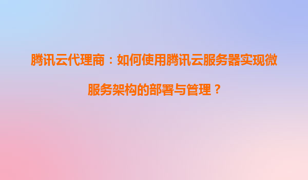 2025-09-18腾讯云代理商:如何使用腾讯云服务器实现微服务架构的部署与管理 一、微服务架构概述 微服务架构是一种将单体应用拆分为多个小型、独立服务的架构模式,每个服务运行在自己的进程中并通过轻量级机制(如HTTPAPI)...