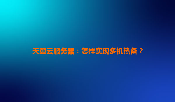 天翼云服务器:怎样实现多机热备?