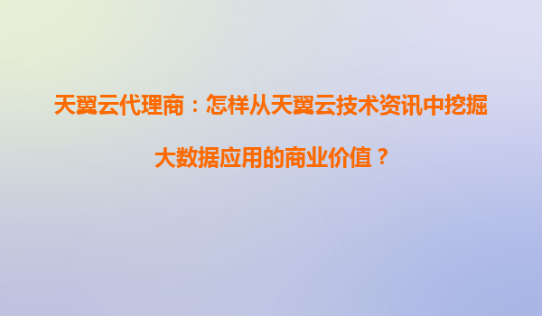 从天翼云技术资讯中挖掘大数据应用的商业价值