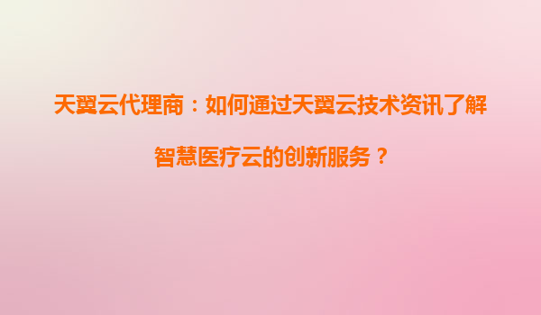 随着数字化转型的深入,智慧医疗成为医疗行业升级的重要方向。天翼云作为国内领先的云服务提供商,凭借其技术优势与资源积累,为医疗机构提供了高效、安全、智能的云服务解决方案。对于天翼云代理商而言,通过天翼云技术资讯深入了解智慧医疗云的创新服务,不仅能把握行业趋势,还能为客户提供更具竞争力的服务支持。