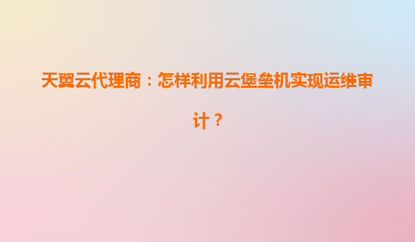 天翼云代理商如何利用云堡垒机实现高效运维审计?