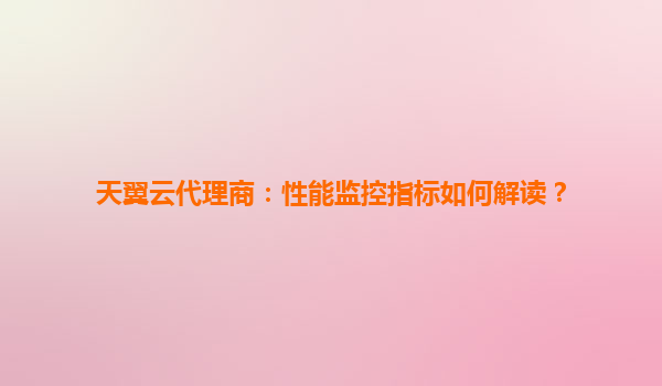 天翼云代理商:性能监控指标解读指南
