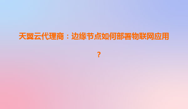 天翼云代理商:边缘节点如何部署物联网应用?