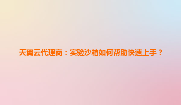 实验沙箱:天翼云代理商快速上手的核心利器