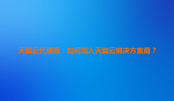 如何加入天翼云解决方案商?全面解析流程与优势
