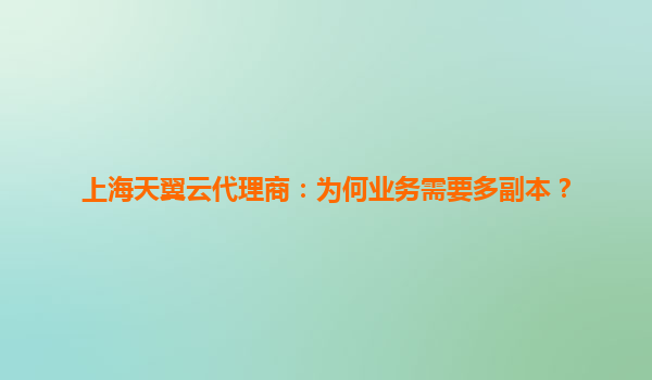 上海天翼云代理商:为何业务必须部署多副本?