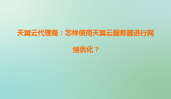 天翼云代理商指南:如何高效使用天翼云服务器实现网络优化