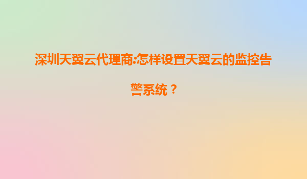 高效运维新体验:深圳天翼云代理商教你设置智能监控告警系统