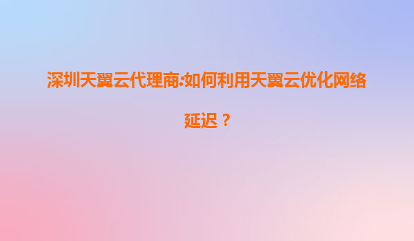 深圳天翼云代理商:如何利用天翼云优化企业网络延迟?