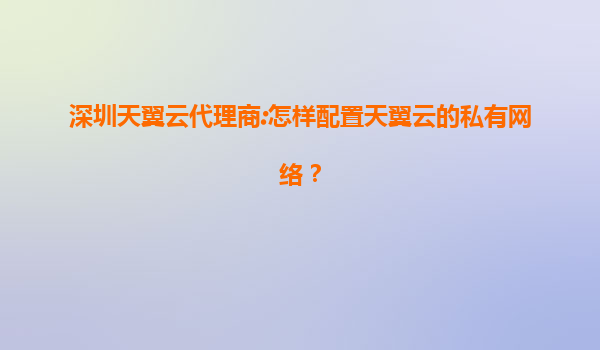 深圳天翼云代理商指南:如何高效配置天翼云私有网络