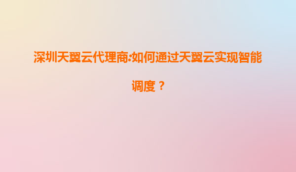 深圳天翼云代理商:如何通过天翼云实现智能调度?