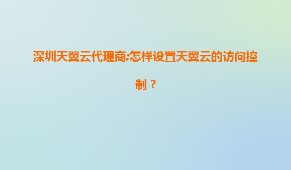 深圳天翼云代理商指南:如何高效设置天翼云访问控制
