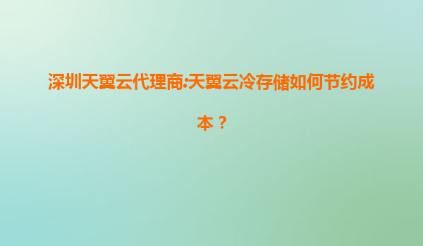 深圳天翼云代理商指南:天翼云冷存储如何为企业大幅节约成本
