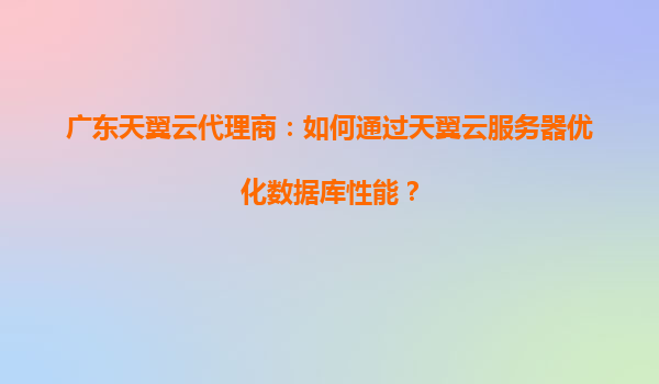 广东天翼云代理商:如何通过天翼云服务器优化数据库性能