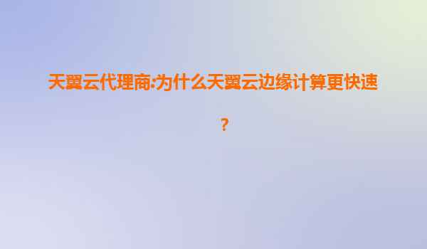 天翼云代理商解读:为什么天翼云边缘计算更快速?