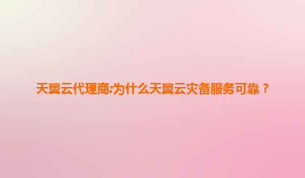 天翼云代理商:为什么天翼云灾备服务可靠?