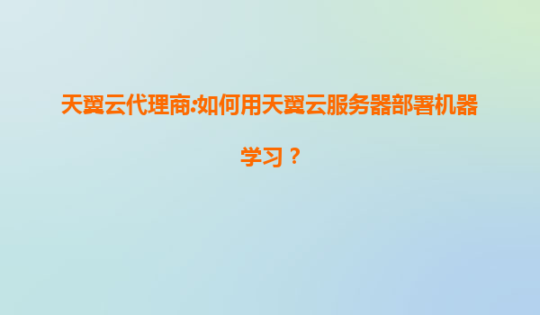天翼云代理商:如何用天翼云服务器部署机器学习?