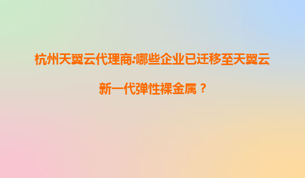 杭州天翼云代理商:哪些企业已迁移至天翼云新一代弹性裸金属?