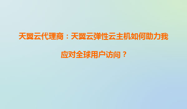 天翼云代理商:天翼云弹性云主机如何助力我应对全球用户访问?