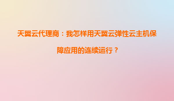 天翼云代理商:如何用天翼云弹性云主机保障应用连续运行